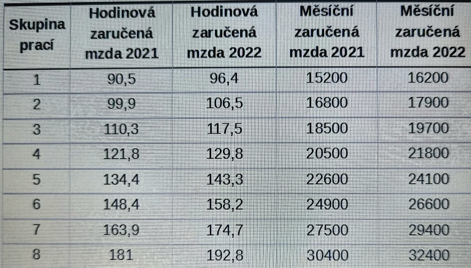 Zaručená mzda podle skupin prací 2022
